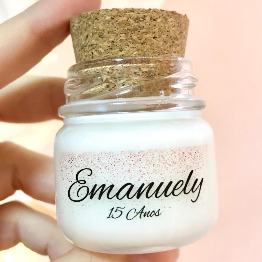 Mini Vela Aromática Lembrancinha 15 Anos Emanuely + Saquinho Organza
