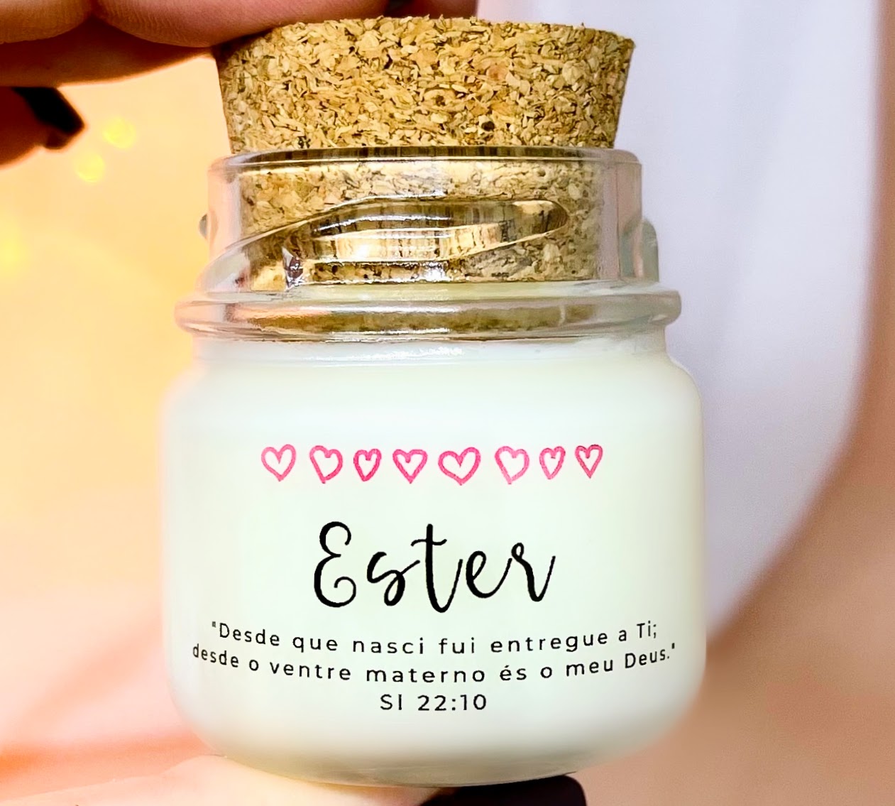 Mini Vela Aromática Lembrancinha Maternidade Ester + Saquinho Organza