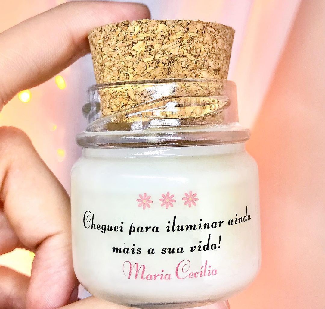 Mini Vela Aromática Lembrancinha Maternidade Maria Cecília + Saquinho Organza
