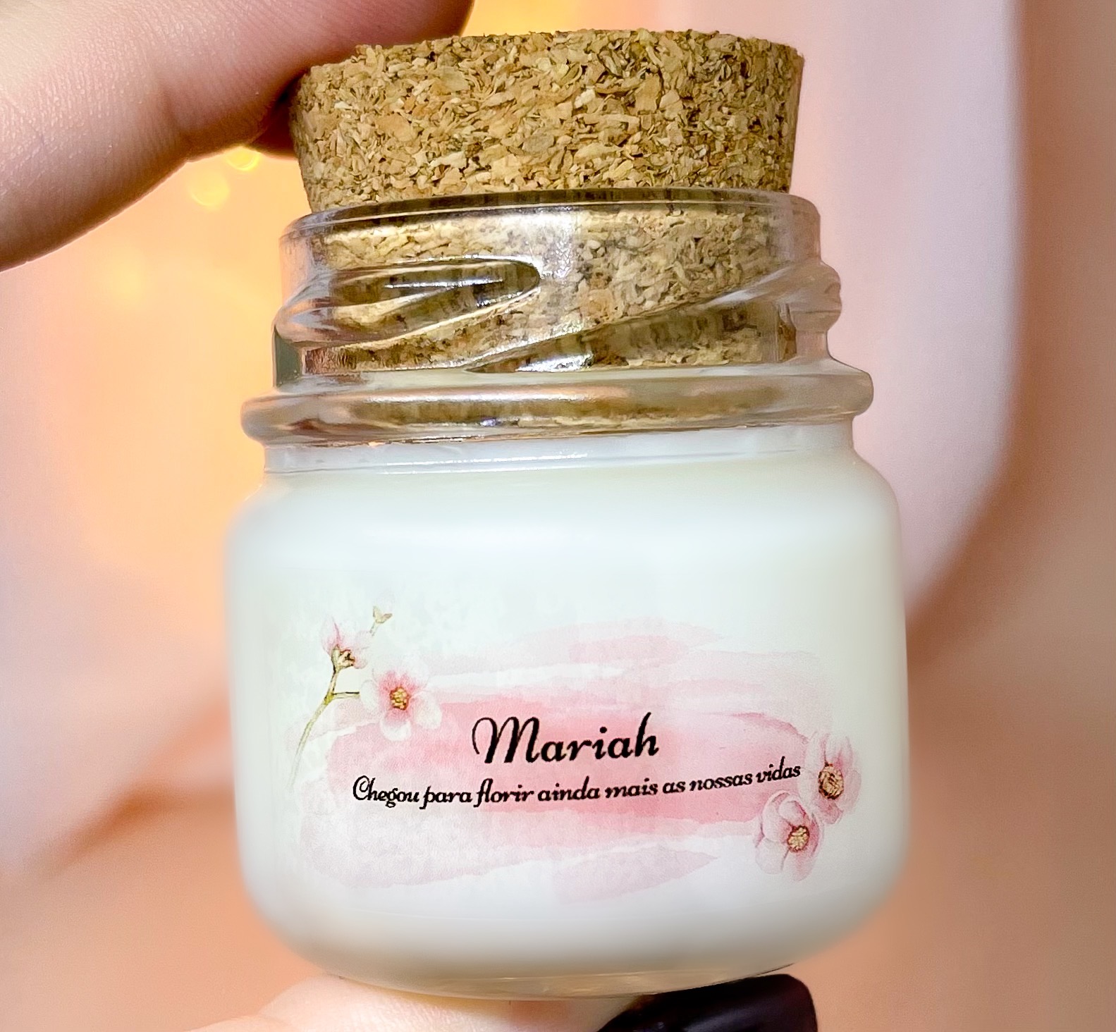 Mini Vela Aromática Lembrancinha Maternidade Mariah + Saquinho Organza