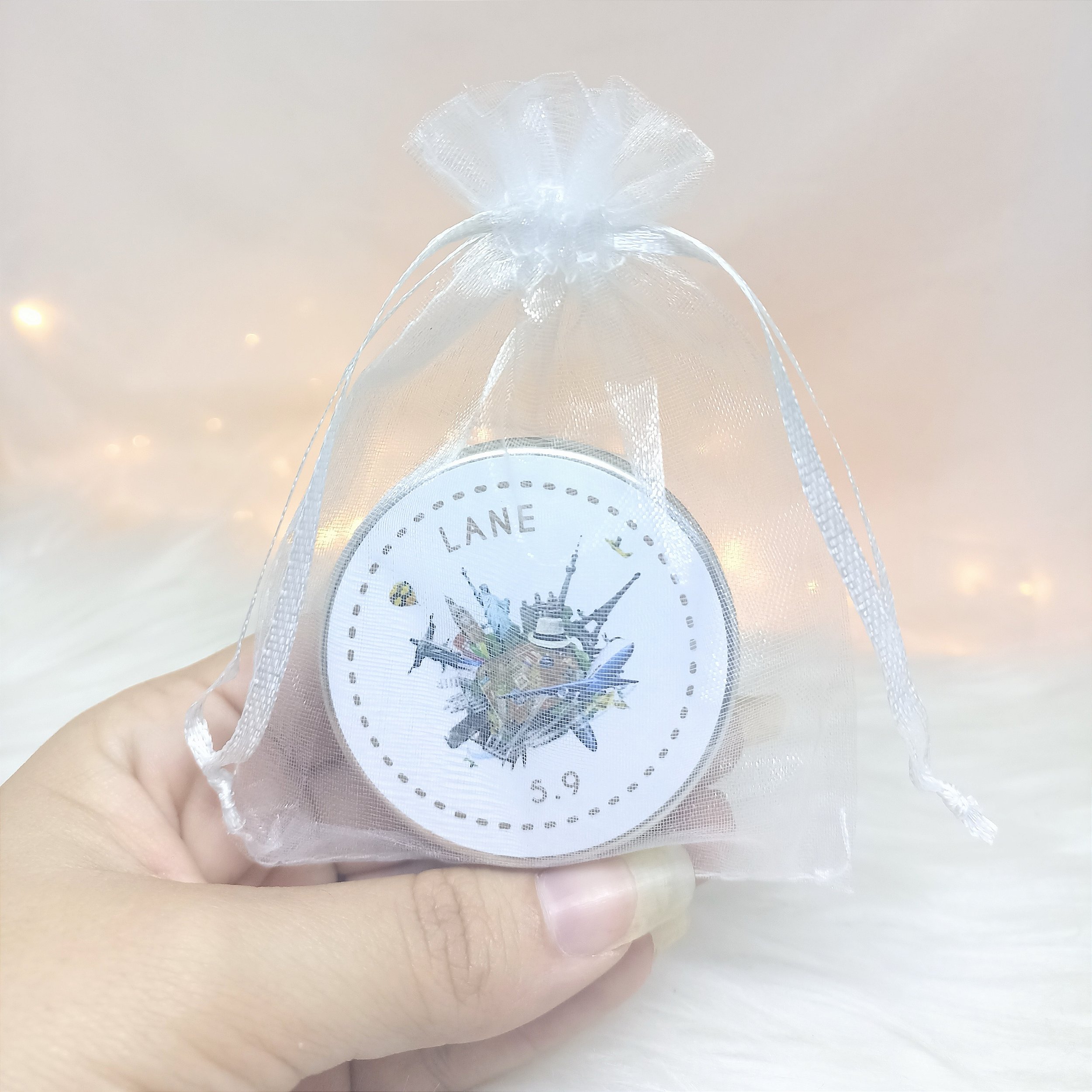 Todas as nossas mini velas acompanham saquinho de organza e vão prontas para você presentear seus convidados.